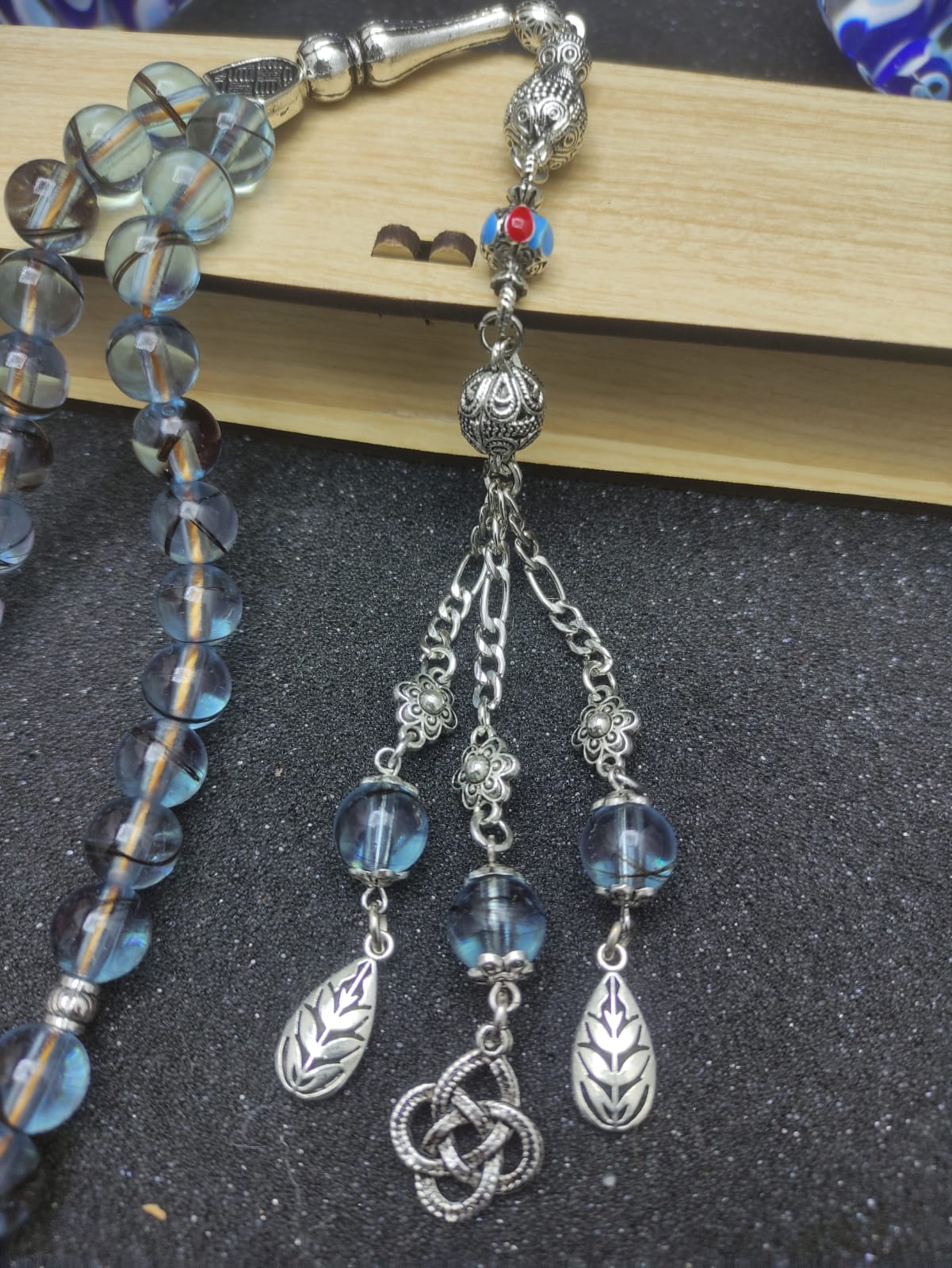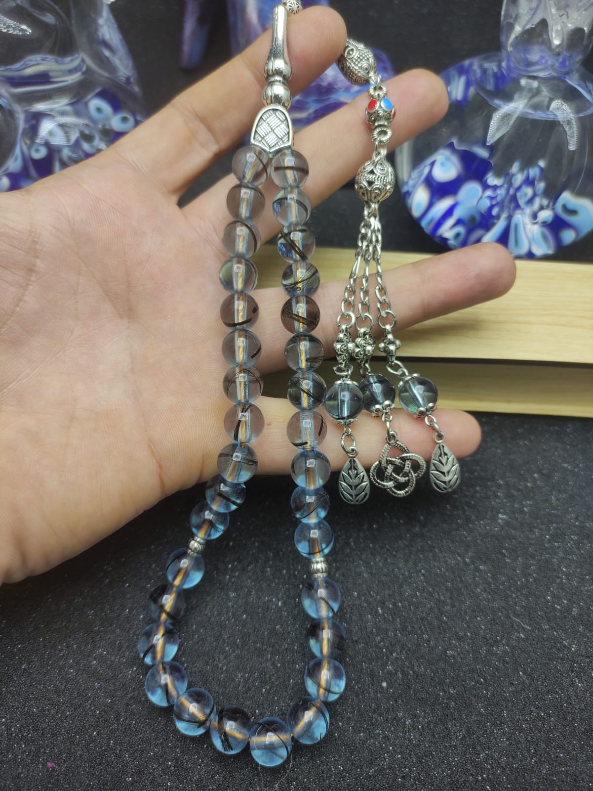 Saç Telli Şeffaf Mavi Epoksi Tesbih