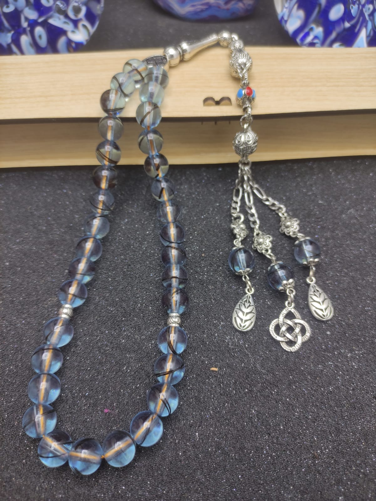 Saç Telli Şeffaf Mavi Epoksi Tesbih